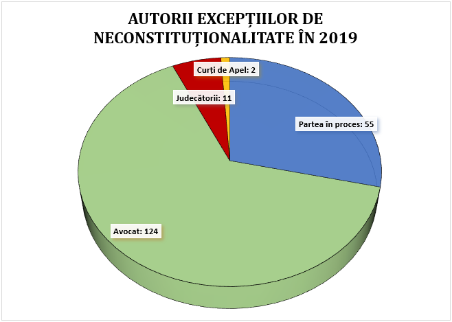 În anul 2019 (a se vedea diagrama nr.3) sesizările aflate pe rolul Curții au fost depuse de către: