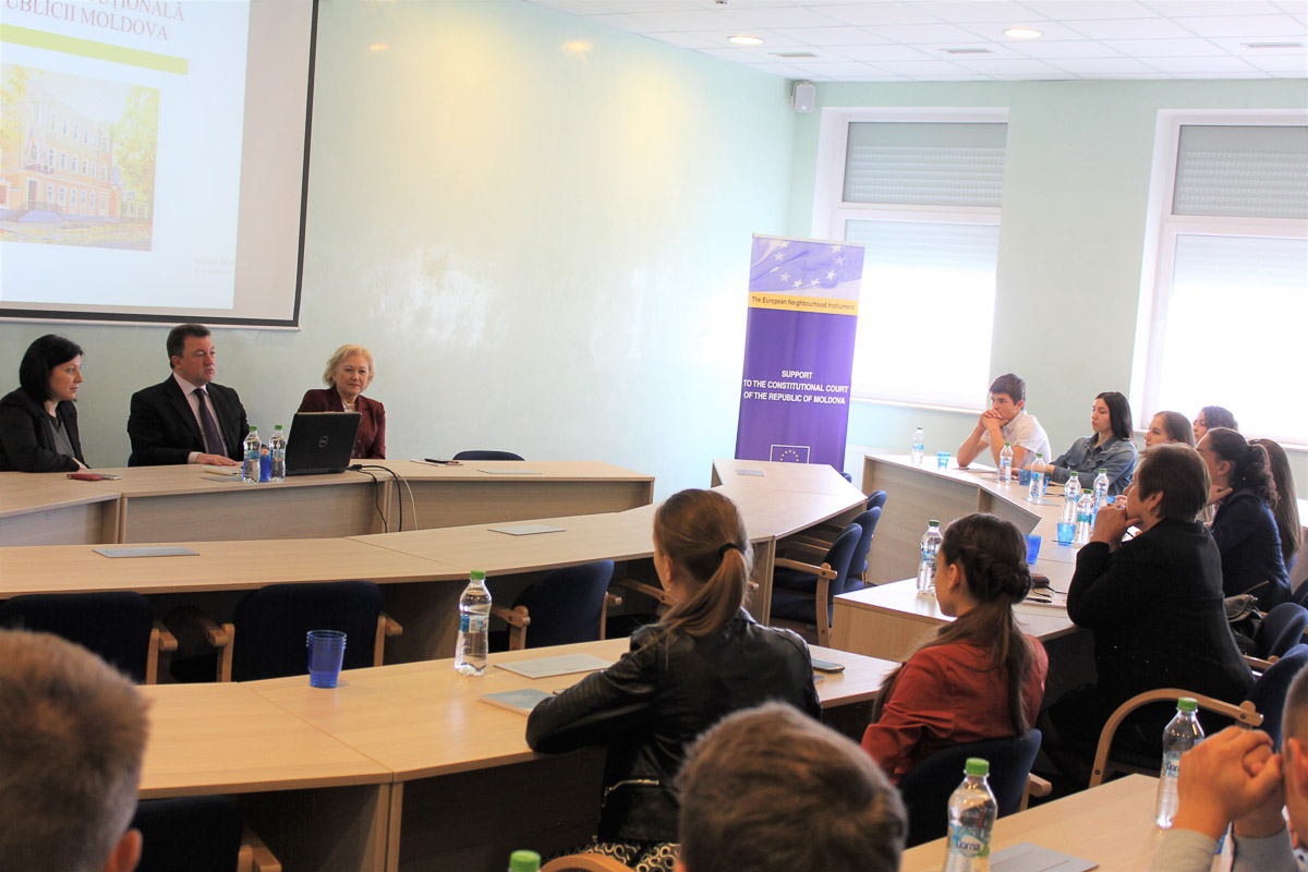 2017 The Students of the High School ”Ștefan cel Mare și Sfânt” From Grigoriopol Town Have Visited the Constitutional CourtOn 17 May 2017, the Constitutional Court of Moldova (CCM) hosted the visit of a group of students of the high school ”Ștefan cel Mare și Sfânt” from Grigoriopol town, which is located in the Eastern segregated part of Moldova and who have to travel to another village – Doroțcaia, in order to learn in Romanian language. The students were given presentations on the activity of CCM and its impact on advancing the European democratic values in Moldova. Thus, the group of students was welcomed by the CCM judge – Assoc. Prof. Dr. Aurel Băieşu and by the Secretary General of CCM – Mrs Diana Balan, who made a presentation of the powers and organisational structure of the Court and answered to questions from the audience on the impact of CCM on the day to day life of citizens. The former judge of the Constitutional Court of Lithuania, who is an expert of the European Union project “Support for the Constitutional Court of the Republic of Moldova,” Prof. Dr. Toma Birmontienė urged the students to study law and underlined the European dimension of the activity of CCM. It is not for the first time when students from the self-proclaimed republic – Transnistria – visit the Court. Thus, for instance, in 2015 the students of the high school ”Lucian Blaga” became acquainted with the activity of the Court. The tradition to host visits of students from the segregated region of Moldova aims at raising awareness of the society as a whole and of the students on the rights guaranteed by the Constitution and how these rights may be defended within the competences of the Court.