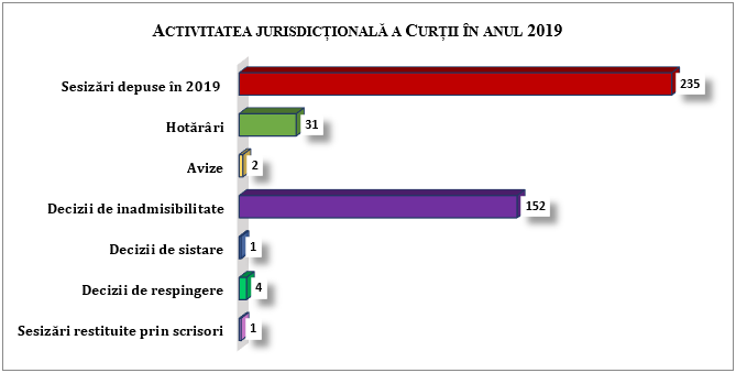În 2019, Curtea a adoptat 31 de hotărâri, și anume: