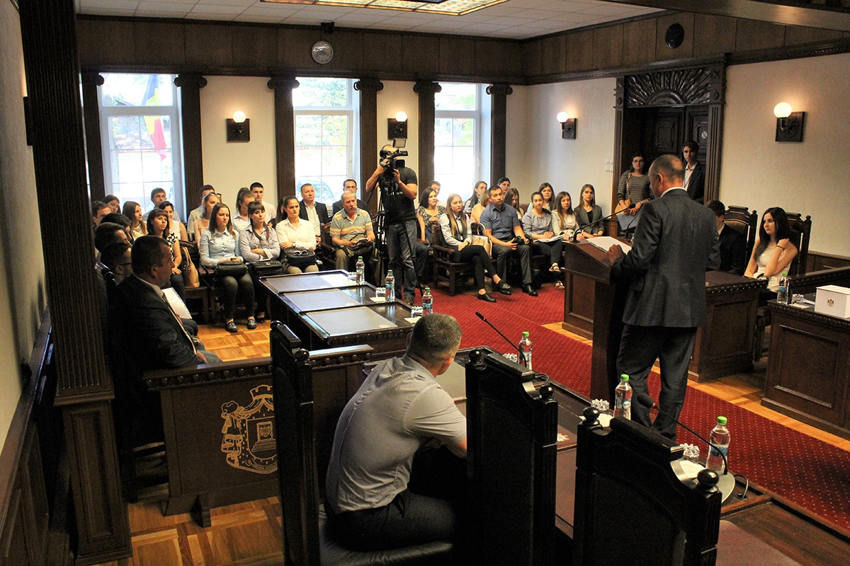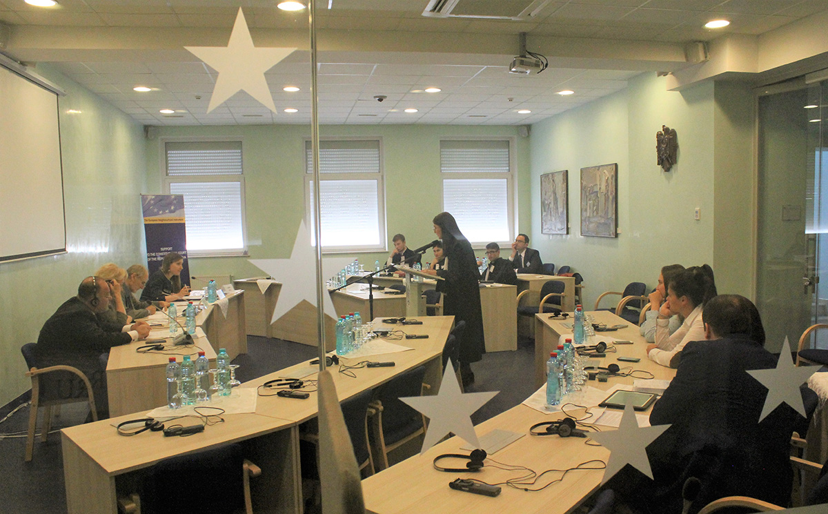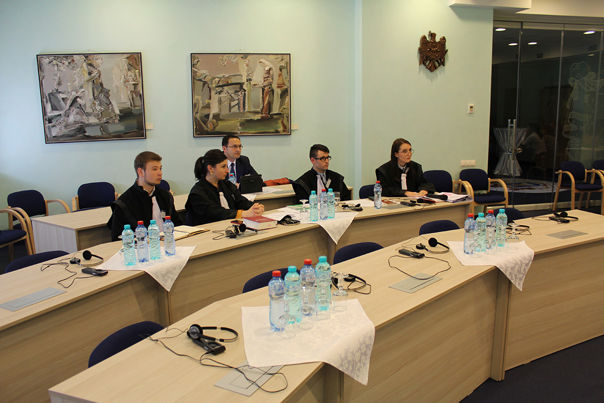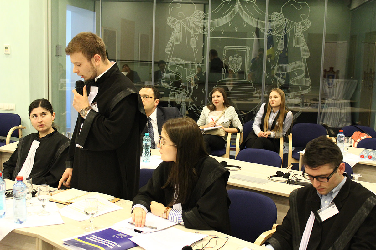 2017 Pentru prima dată, studenți din universitățile din țară concurează în fața Curții ConstituționaleÎn ziua de luni, 19 iunie 2017, pentru prima dată, în fața Curții Constituționale (CCM) pledează studenți la drept din 8 universități din țară, în cadrul Concursului de Procese Simulate în Dreptul Constituțional. Finala concursului va avea loc vineri, 23 iunie. Judecătorul CCM, Veaceslav Zaporojan a salutat disponibilitatea viitorilor juriști ca să participe la acest concurs, care este o premieră pentru țară. Potrivit judecătorului CCM, lansarea concursului este o dovadă a faptului că “atât Curtea Constituțională a Republicii Moldova, cât și instanțele judiciare devin parteneri cruciali în realizarea strategiei de dezvoltare a Uniunii Europene “Europa 2020” de a stimula și de a menține dezvoltarea domeniului dreptului.” Expertul cheie al proiectului Uniunii Europene “Suport pentru Curtea Constituțională a Republicii Moldova,” Mamuka Jgenti a opinat că în perioada recentă, în domeniul drepturilor omului, în Republica Moldova s-au produs schimbări majore datorită activității CCM. În acest sens, expertul a declarat: “Acest concurs constituie un exercițiu care va deschide mai multe oportunități participanților, în calitate de viitori juriști și avocați. Iar aceasta devine și mai actual în contextul oportunităților de apărare a drepturilor fundamentale prin ridicarea excepțiilor de neconstituționalitate în fața CCM, atunci când sunteți parte a unui litigiu în instanță, avocat sau judecător.” Universitățile participante – 8 la număr – sunt din întreaga țară: ASEM, ULIM, USM, USEM, USPEE „Constantin Stere” din Chișinău, Universitatea de Stat „Alecu Russo” din Bălți, Universitatea de Stat „Bogdan Petriceicu Hașdeu” din Cahul și Universitatea de Stat din Comrat. Scopul acestui concurs, organizat în premieră pentru Moldova, este să ofere posibilitatea studenților să aplice în practică cunoștințele teoretice acumulate și să dezvolte abilitățile practice de pledanți în fața CCM.