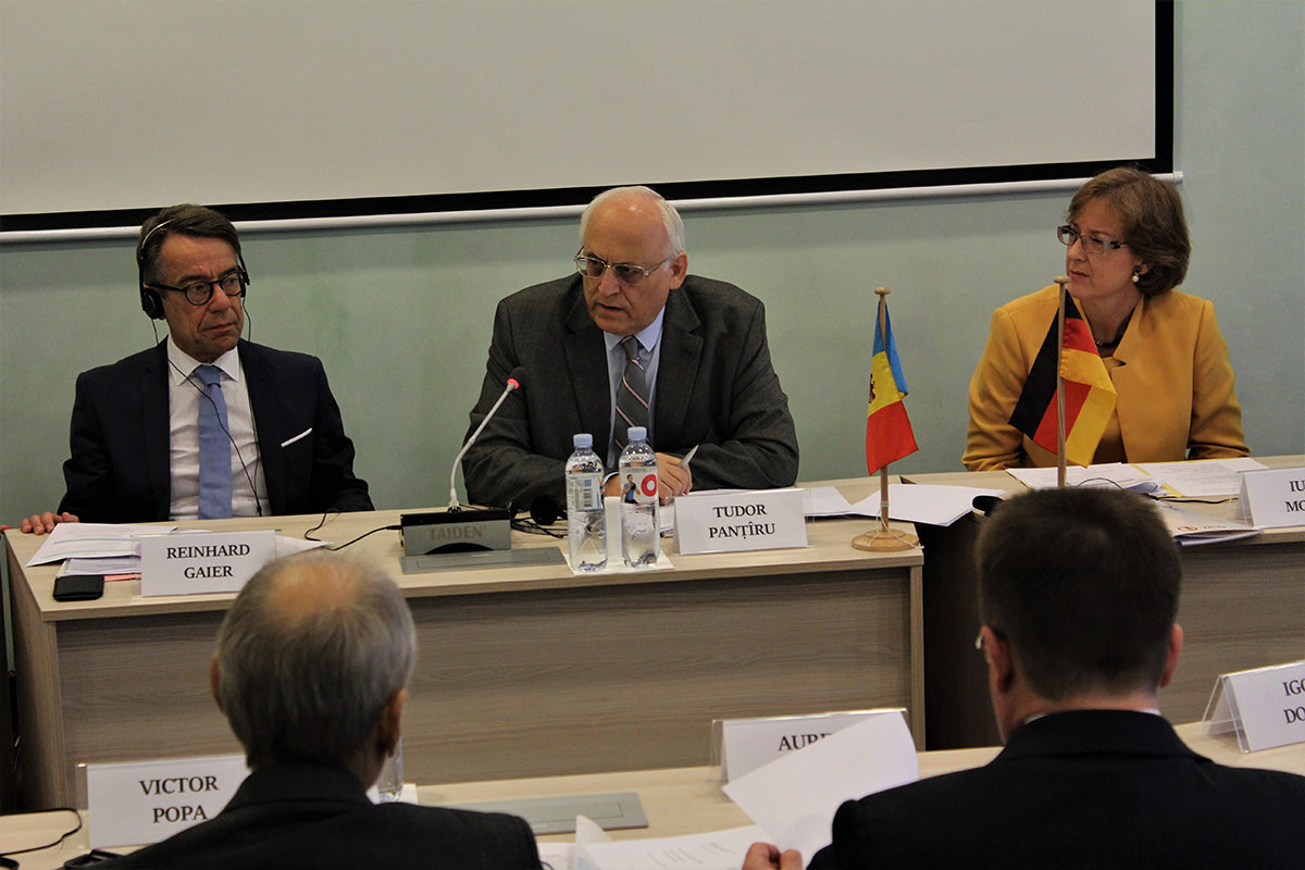2017 The Role of the Constitutional Court in Solving Conflicts Between State Authorities. The Experience of Germany and MoldovaOn Wednesday, 11 October 2017, in the premises of the Constitutional Court of Moldova (CCM) discussions were held on the cooperation between state authorities and the role of the Constitutional Court in solving them. As experts of the Round Table ”Cooperation between state authorities. The role of the Constitutional Court in solving ”conflicts” between state authorities” were invited the former President of the Constitutional Court of the Land of Saxony in Germany - Mr. Winfried Schubert and the former Judge of the Federal Constitutional Court of Germany - Mr. Reinhard Gaier. Opening speeches were addressed by the President of CCM, Mr. Tudor Panțîru and by the German Ambassador in Moldova, H.E. Iulia Monar. The discussions were focused on such topics as the role and powers of constitutional authorities in Germany and the Republic of Moldova, relationships of CCM with other state authorities, the role of CCM in ensuring the rule of law etc. The discussions were attended by invitees from public authorities and academia. The event was organised in cooperation with the German Foundation for International Legal Cooperation (IRZ Foundation). This is an English language courtesy translation of the original press-release in Romanian language. |