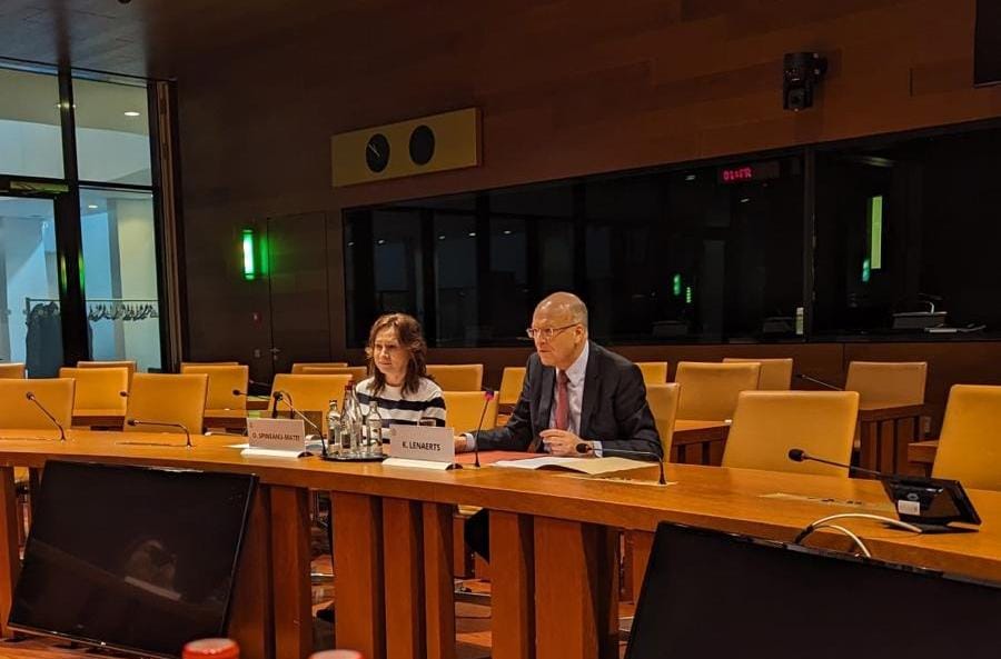 2024 Prima zi de lucru a judecătorilor constituționali în cadrul vizitei oficiale la Curtea de Justiție a Uniunii EuropeneÎn data de 26 februarie 2024, judecătorii Curții Constituționale împreună cu Președintele Curții, dna Domnica Manole, aflați în vizită oficială la Curtea de Justiție de la Luxemburg, au participat la un şir de sesiuni de lucru tematice privind Curtea de Justiție a Uniunii Europene (CJUE). Cu această ocazie, a avut loc o întrevedere cu Președintele Curții de Justiție, dl Koen Lenaerts și cu dna Octavia Spineanu-Matei, judecător al CJUE din partea României, în cadrul careia s-a discutat despre activitatea, competențele şi jurisprudenţa recentă a Curţii de Justiţie. De asemenea, pe parcursul sesiunilor au fost abordate subiecte ce vizează interacțiunea dintre CJUE și curțile constituționale, relevanța Convenției Europene a Drepturilor Omului pentru jurisprudența CJUE și modul în care judecătorii CJUE interpretează dreptul Uniunii Europene, discuțiile fiind purtate cu Președintele Lenaerts, Vicepreședintele Curții, dl Lars Bay Larsen, Președinții Camerelor Curții de Justiție, dnii Alexander Arabadjiev şi Eugene Regan și dna Octavia Spineanu-Matei, şi cu Primul Avocat General al Curții de Justiție, dl Maciej Szpunar, precum și cu dna judecător Ineta Ziemele. Judecătorii Curții Constituționale au participat la sesiuni de discuții în cadrul cărora au fost prezentate informații cu privire la procedura preliminară în fața Curții de dl M.-A. Gaudissart, grefier-adjunct al Curții de Justiție. Despre rolul Avocatului General le-a relatat dl R. Klages, asistent juridic în Camera Primului Avocat General Maciej Szpunar. Totodată, într-o rundă de discuții separată, dna Diana Bulancea, șefa Unității de traduceri în limba română, le-a vorbit judecătorilor despre multilingvism. În cea de-a doua zi de lucru, delegația va asista la audierea unei cauze aflate pe rolul Curții. |