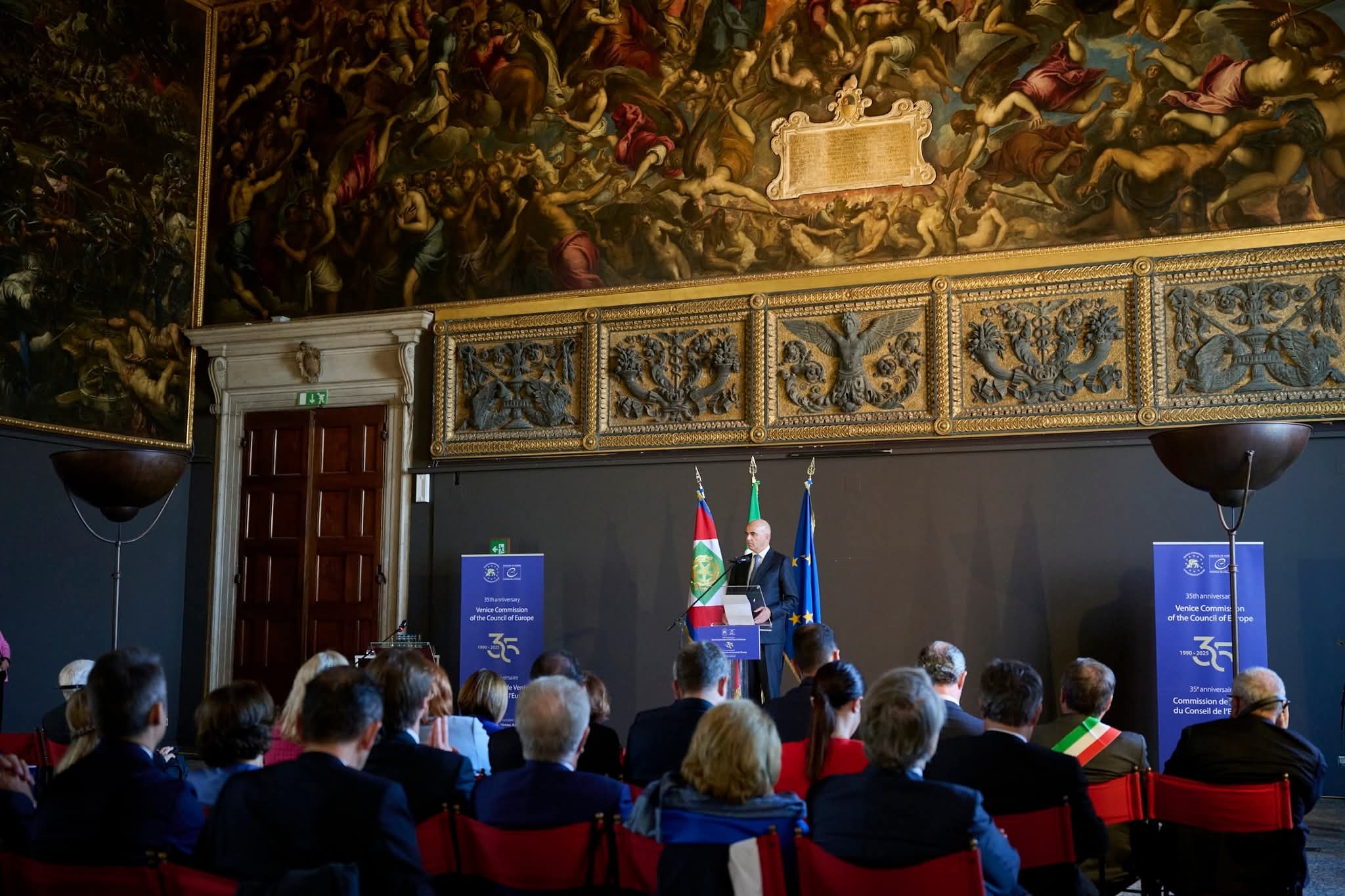 2025 Comisia de la Veneția - 35 de ani de activitate: participarea Președintei Curții Constituționale la ceremonia jubiliarăÎn data de 11 octombrie 2025, Președinta Curții Constituționale a Republicii Moldova, doamna Domnica Manole, a participat la ceremonia aniversară dedicată celebrării a 35 de ani de la înființarea Comisiei Europene pentru Democrație prin Drept (Comisia de la Veneția). În acest an, Comisia Europeană pentru Democrație prin Drept, cunoscută în întreaga lume drept Comisia de la Veneția, celebrează 35 de ani de la înființare. Creată la 10 mai 1990, ca organism consultativ al Consiliului Europei, Comisia s-a născut din dorința de a oferi statelor un sprijin solid în consolidarea democrației, a statului de drept și a protecției drepturilor fundamentale. De-a lungul anilor, Comisia de la Veneția a devenit un for unic de reflecție juridică și constituțională, reunind experți independenți - judecători constituționali, magistrați, profesori universitari, avocați ai poporului și specialiști în domeniul electoral - din 61 de state. Dintre acestea, 46 sunt statele membre ale Consiliului Europei, iar 15 provin din țări din Africa, Asia și cele două Americi, ceea ce conferă Comisiei o dimensiune globală și o voce de autoritate în promovarea democrației prin drept. Festivitățile aniversare s-au desfășurat la Veneția, în locuri încărcate de istorie și simbolism. Ceremoniile au debutat pe 9 și 10 octombrie la Scuola Grande di San Giovanni, sediul tradițional al sesiunilor plenare ale Comisiei, și au continuat pe 11 octombrie cu un moment solemn la Palatul Dogilor ("Palazzo Ducale") - inima vechii Republici Serenissime. La această celebrare au participat personalități marcante ale vieții politice și instituționale europene, între care Sergio Mattarella, Președintele Republicii Italiene, Maia Sandu, Președinta Republicii Moldova, Gordana Siljanovska-Davkova, Președinta Macedoniei de Nord, Egils Levits, fost Președinte al Letoniei și fost judecător al Curții Europene a Drepturilor Omului, Alain Berset, Secretarul General al Consiliului Europei, Theodoros Rousopoulos, Președintele Adunării Parlamentare a Consiliului Europei, ș.a. În semn de omagiu adus istoriei și misiunii Comisiei, a fost inaugurată și expoziția „Democracy through law: from the Serenissima Republic to the Venice Commission of the Council of Europe" („Democrația prin lege: de la Republica Serenissima la Comisia de la Veneția a Consiliului Europei"), găzduită în cadrul Palatului Dogilor. Deschisă publicului până la 6 ianuarie 2026, expoziția oferă vizitatorilor o incursiune fascinantă în evoluția ideii de democrație și în rolul pe care Comisia de la Veneția l-a avut în apărarea democrației de-a lungul celor trei decenii și jumătate de existență. Fotografiile utilizate în comunicat provin din surse oficiale și personale: galeria foto de pe pagina oficială a Președinției Republicii Moldova, pagina oficială de Facebook a Consiliului Europei și surse proprii.