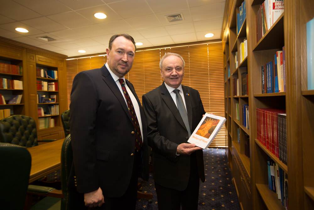 The President of Moldova also visited the recently reopened library of the CCM, which specializes in book funds in the constitutional field. The CCM’s Library, named after the illustrious jurist and politician Ion Pelivan, was supplemented with generous title donations, both in Romanian and in English, French and German, within the projects developed by the Constitutional Court with UNDP, the Office of the High Commissioner for Human Rights, the Federal Ministry for Europe, Integration and Foreign Affairs of Austria, the German Foundation for International Legal Cooperation (IRZ), the Foundation Friedrich-Ebert-Stiftung (FES), the Hanns Siedel Foundation, the Association of Francophone Constitutional Courts (ACCPUF). Among the titles of these precious and valuable collections of leading publishers there are books on law, such as constitutional law, European law, fundamental human rights and electoral law. The book collection covers narrow and concrete matters of law, which address in depth outstanding matters in the field of research of the Constitutional Court.