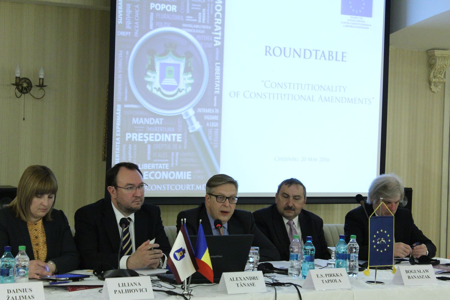 2016 Judecători constituționali din UE au discutat competența curților constituționale de verificare a modificărilor ConstituţieiLa 20 mai 2016, constituționaliști de valoare din UE și Moldova au discutat aspectele teoretice și practice privind verificarea de către Curțile Constituționale a revizuirilor Constituției. La eveniment au fost prezenți circa 100 invitați. La deschiderea lucrărilor mesei rotunde cu genericul ”Constituționalitatea amendamentelor constituționale”, au prezentat mesaje de salut Președintele CCM dl Alexandru Tănase, dna Liliana Palihovici, Vicepreședintele Parlamentului, E.S. Pirkka Tapiola, Șeful Delegației UE în Moldova și Prof. Dr. Boguslaw Banaszak din partea Comisiei de la Veneția a Consiliului Europei. La eveniment a fost prezentată experiența Curților Constituționale din Europa privind aspectele ce țin de forța juridică a Constituției, ca lege fundamentală care stabilește principiile pe baza cărora se organizează statul și societatea, precum și limitele de revizuire a acesteia. Cu aceste mesaje în Moldova au venit judecători ai Curților Constituționale din Austria, Bulgaria, Georgia și Lituania, precum și renumitul expert în drept constituțional din Germania - Prof. Dr. Rainer Arnold. Din Moldova, la eveniment au fost prezenți invitați din partea Parlamentului, CSM, Ministerului Justiției, Avocatului Poporului, Procuraturii Generale, Uniunii Avocaților, mediului academic și societății civile. În discursul său, Președintele CCM dl Alexandru Tănase a prezentat căile de revizuire a Constituției – pe cale parlamentară și referendară – precum și competența Curții Constituționale de a se pronunța asupra acestor revizuiri. Dl Alexandru Tănase a subliniat limitele de revizuire a Constituției cuprinse în cadrul legal, dar și cele trasate pe cale jurisprudențială. La fel, Președintele CCM a făcut referire la efectele Hotărârii CCM nr. 7 din 4 martie 2016 și la experiența anilor ce au urmat reformei din 2000 când s-a schimbat modalitatea de alegere a Președintelui RM, perioadă în care Republica Moldova a avut parte de un deceniu și jumătate de instabilitate instituțională și politică. În continuarea programului, dl Dainius Zalimas, Președinte al CC Lituania a prezentat experiența din țara sa privind aplicarea controlului de constituționalitate a amendamentelor constituționale. În viziunea sa, la aplicarea controlului de constituționalitate a amendamentelor constituționale urmează a fi luat în considerare faptul că Constituția este un act integral, care nu poate să conțină lacune. Judecătorul CC din Austria, Dr. Johannes Schnizer a prezentat în discursul său un set de reflecții asupra activității unei curți constituționale. Astfel acesta a declarat că deciziile CC trebuie să fie respectate de către societate și toate autoritățile publice. Judecătorul CC din Bulgaria, Dr. Mariana Todorova Karagiozova-Finkova a prezentat cauzele de referință din jurisprudența constituțională bulgară în ceea ce privește aplicarea controlului de constituționalitate a legilor. Prof.Dr. Rainer Arnold de la Universitatea din Regensburg din Germania a făcut referință la caracterul evolutiv al Constituției și necesitatea abordării în acest aspect a limitelor curente de revizuire a Legii Supreme. Sub acest aspect , în viziunea sa dinamismul judiciar este indispensabil și este cel mai bine garantat de o justiție constituțională eficientă. Președintele CC din Georgia, dl Papuashvilli a transmis un mesaj prin care a salutat oportunitatea organizării evenimentului și a subliniat importanța și actualitatea genericului mesei rotunde. Experiența Cehiei a fost redată de Dr. Jan Kudrna de la Universitatea Charles din Praga (Republica Cehă). Acesta a venit cu un mesaj în susținerea preeminenței dreptului – orice modificare a Constituției care ar încălca acest principiu este inadmisibilă. Membrul Comisiei de la Veneția a Consiliului Europei, Prof. Dr. Boguslaw Banaszak în prezentarea sa a argumentat necesitatea verificării modificărilor Constituției. În viziunea sa, doctrina constituțională recunoaște importanța verificării de către Curtea Constituțională a modificărilor Constituției. În acest sens, reprezentatul Comisiei de la Veneția a evocat faptul că democrația are nevoie de proceduri, așa cum în sine democrația este doar o cale, o metodă de funcționare a societății. La finele programului mesei rotunde, Prof. Dr. Toma Birmontiene, expert al Proiectului UE de susținere a CCM și judecător în demisie al CC din Lituania, a prezentat concluziile discursurilor și discuțiilor. În cuvântul său de încheiere a lucrărilor mesei rotunde, Președintele CCM Alexandru Tănase și-a exprimat aprecierea pentru reușita evenimentului, care a permis să fie abordate cele mai importante aspecte ale verificărilor de către curțile constituționale a modificărilor Constituției: experiența altor curți constituționale la acest capitol, statutul și rolul clauzelor de eternitate și importanța respectării principiului supremației Constituției în stat. Evenimentul a avut loc cu sprijinul proiectului UE ”Suport pentru Curtea Constituțională a Republicii Moldova.” Pentru vizualizarea video a lucrărilor mesei rotunde, accesați difuzarea în direct de către Privesc.eu și Realitatea TV. |